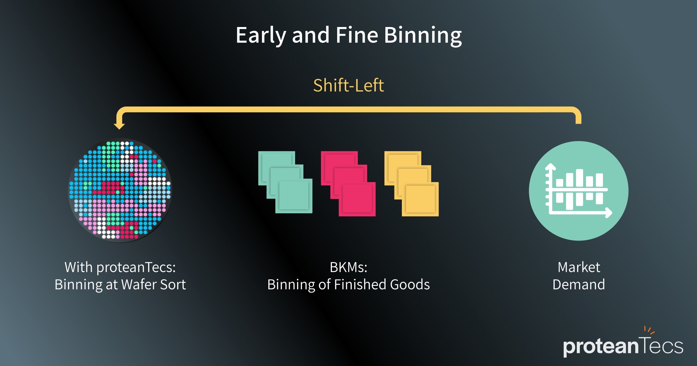 Proteus provides a way of classifying the dies into bins with varying degrees of reliability at an early stage, enabling predictions about reliability behavior of different classes of die, already at Wafer Sort. Not only does the process provide significant savings, but supply can be tailored to meet market demand for various applications according to reliability requirements.