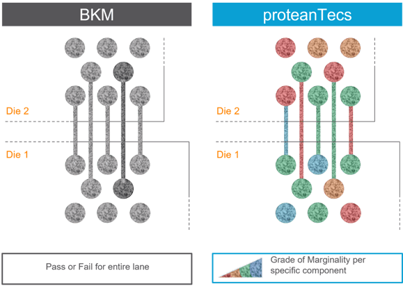 In contrast, parametric lane grading goes beyond just pass/fail testing. It provides a grade of marginality per lane. This granularity allows setting performance thresholds for swapping lanes with spare ones even if their tests currently pass. It also enables yield improvement in the manufacturing line, followed by quality and safety enhancements as well as lifetime extension in the field.